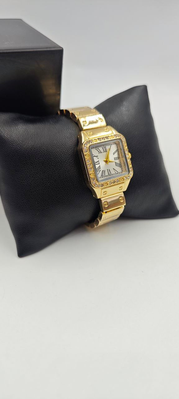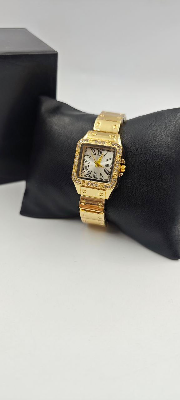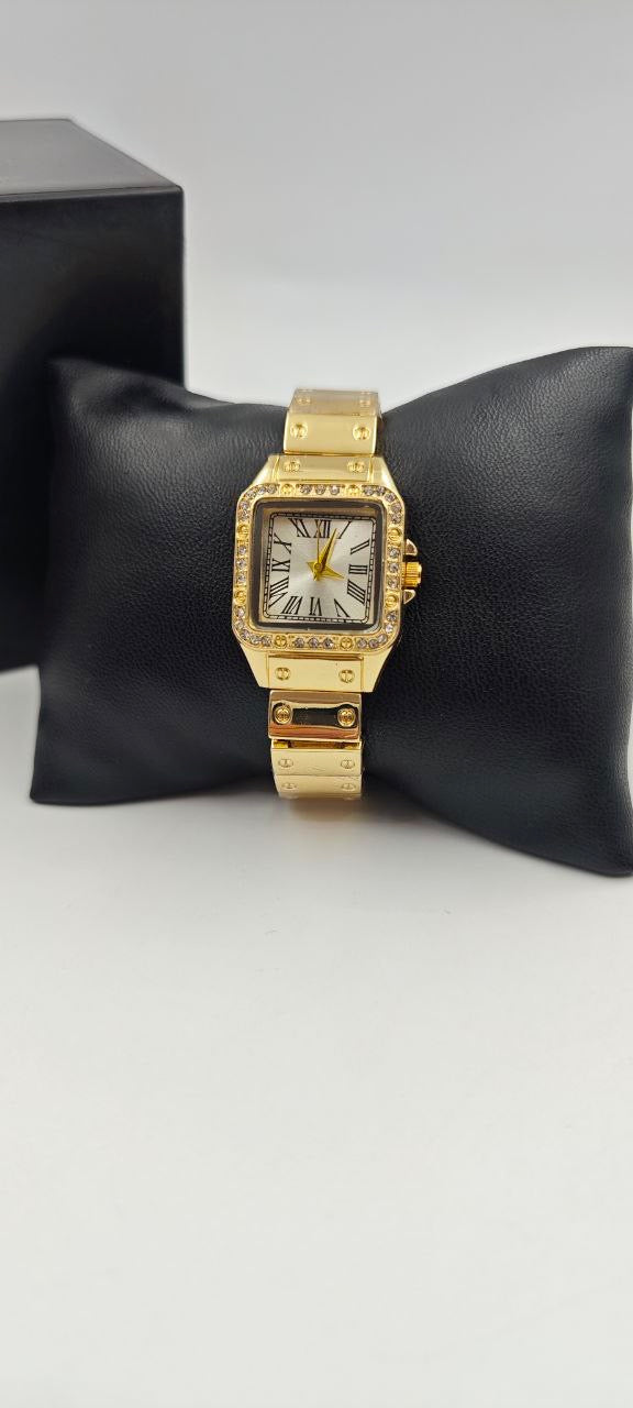DIŞI ALTIN İÇİ BEYAZ KARE BAYAN SAAT