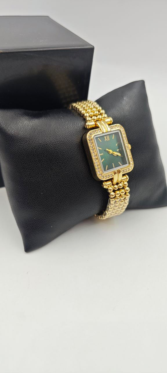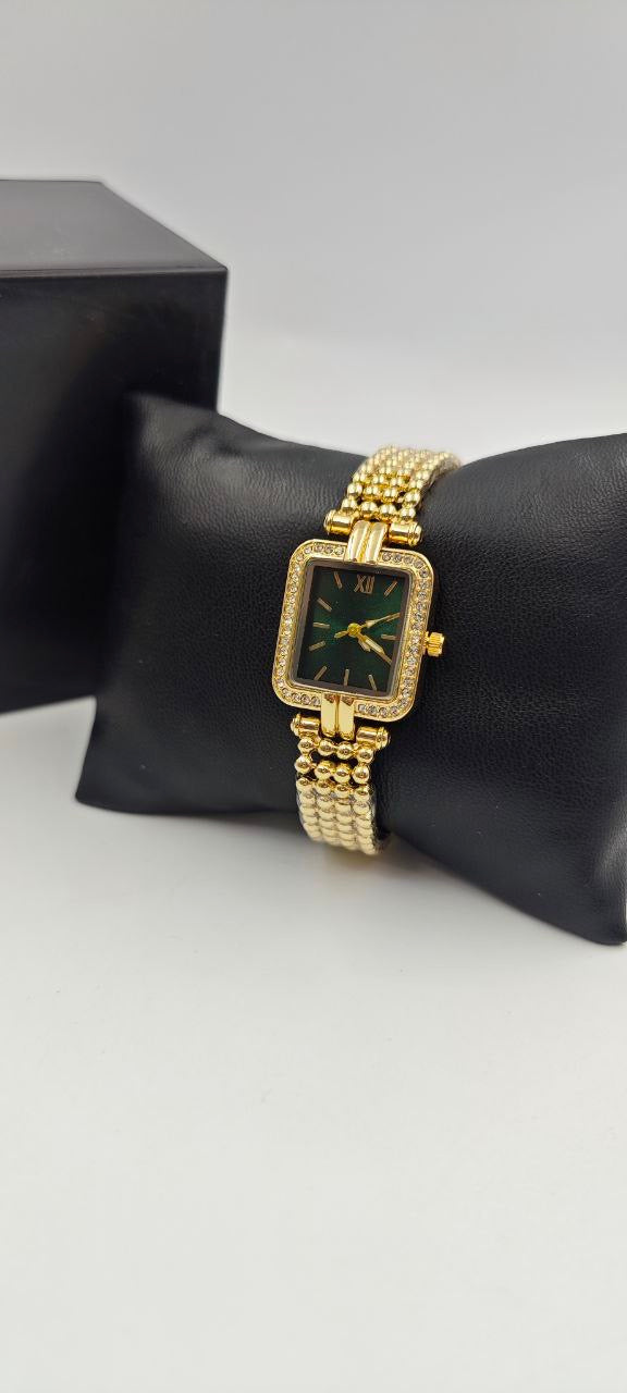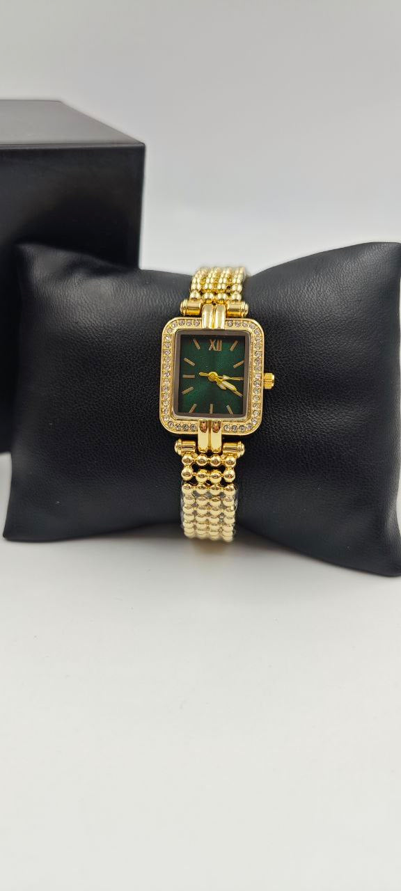 DIŞI ALTIN İÇİ YEŞİL KARE BAYAN SAAT