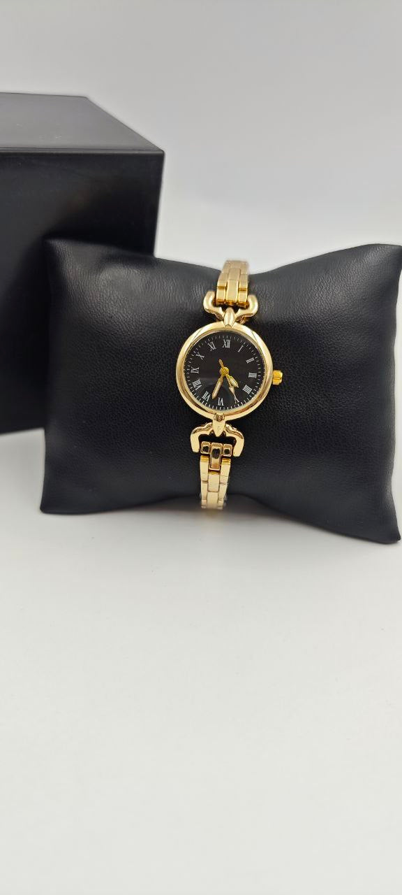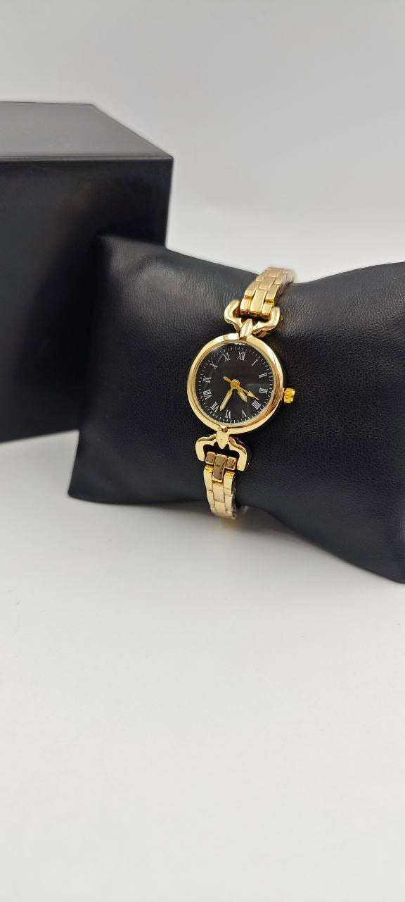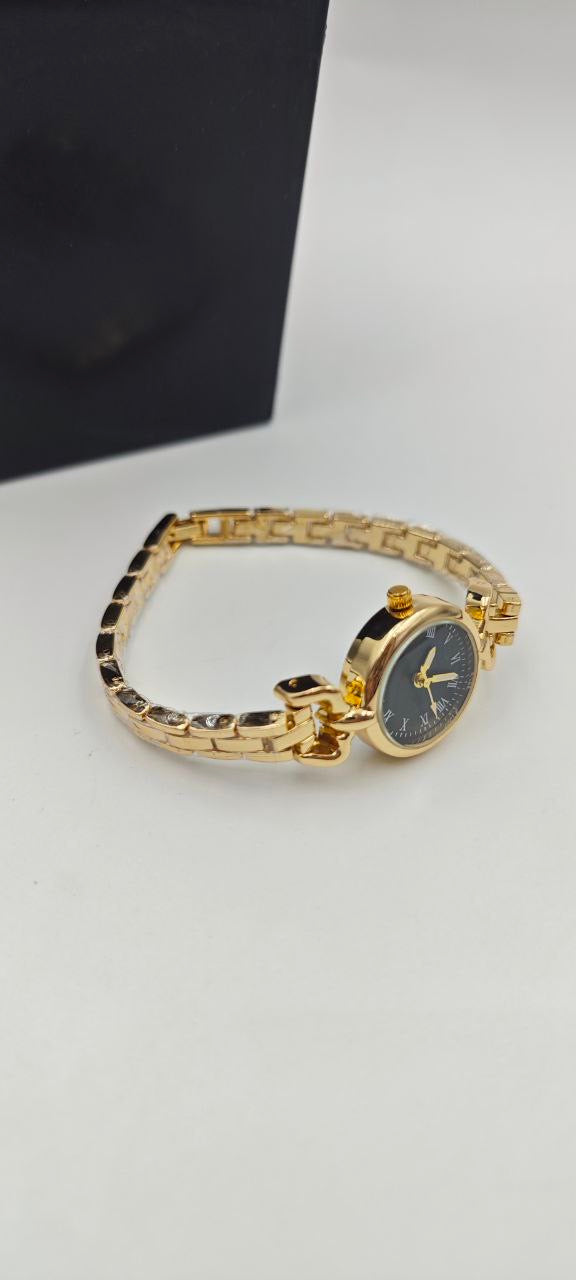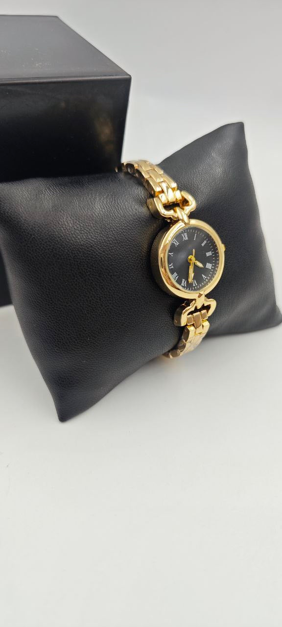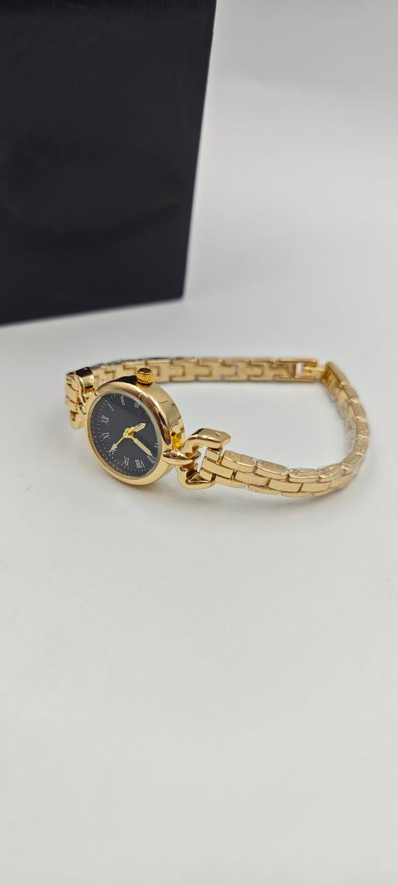 DIŞI GOLD İÇİ SİYAH YUVARLAK BAYAN SAAT