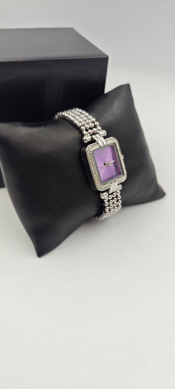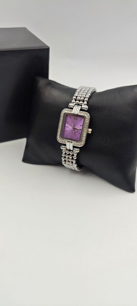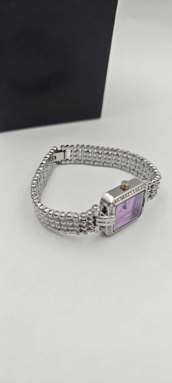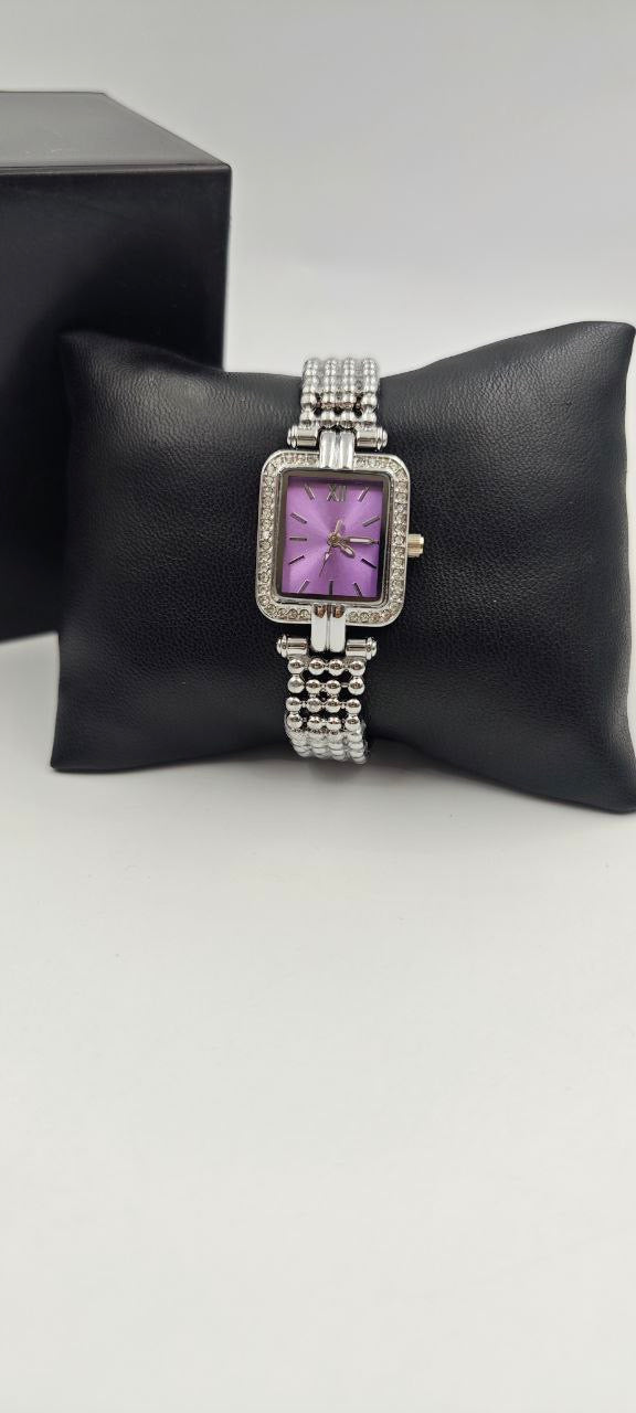 DIŞI GÜMÜŞ İÇİ MOR KARE BAYAN SAAT