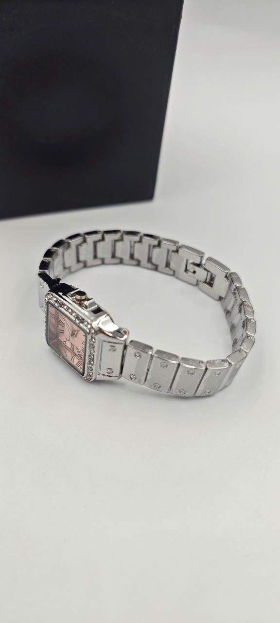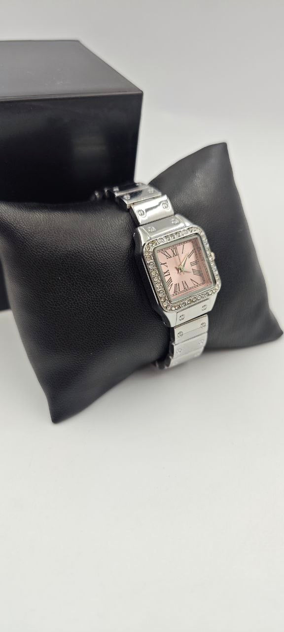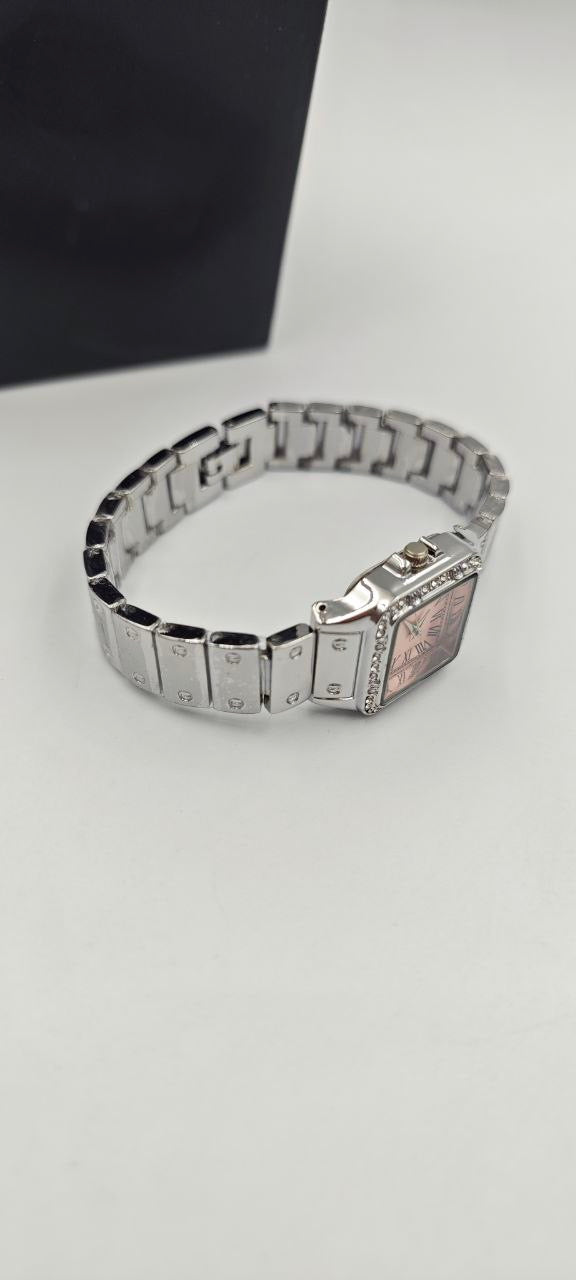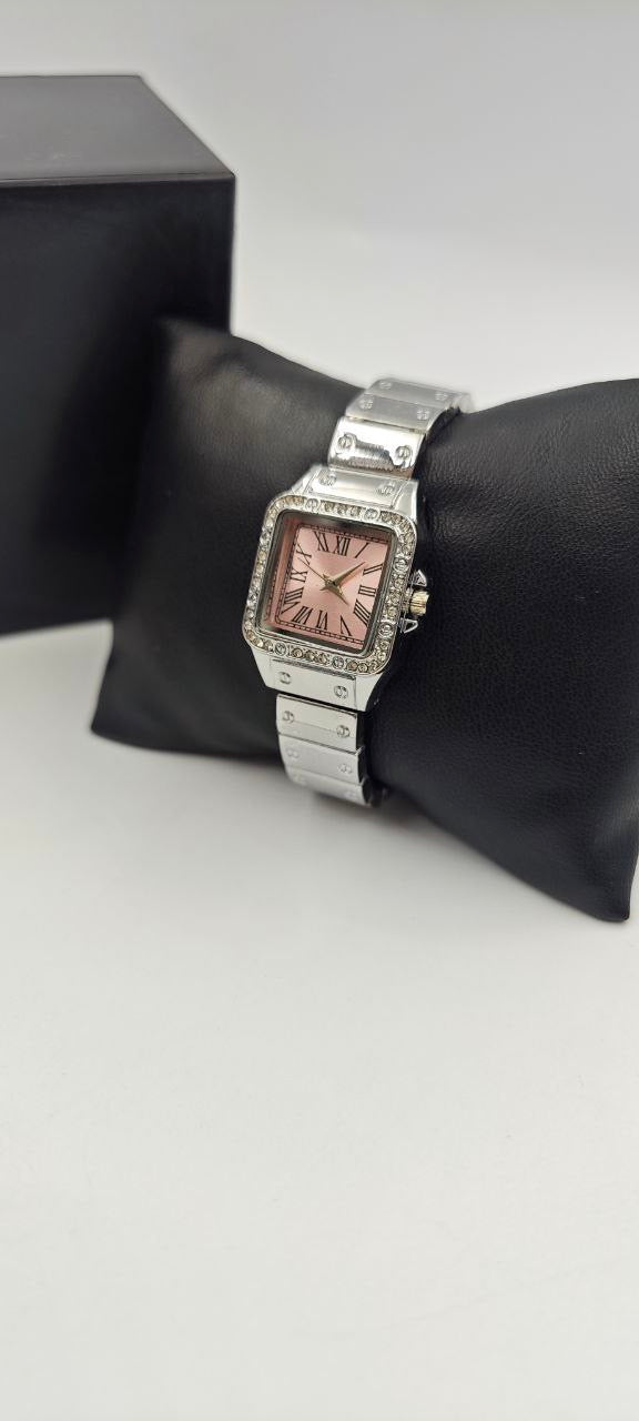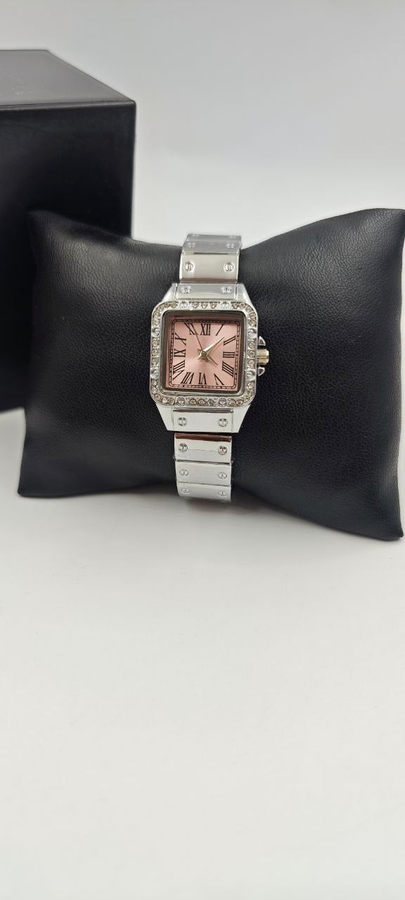 DIŞI GÜMÜŞ İÇİ PEMBE KARE BAYAN SAAT