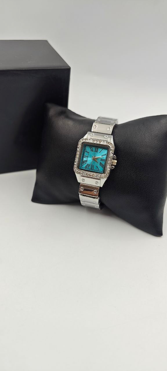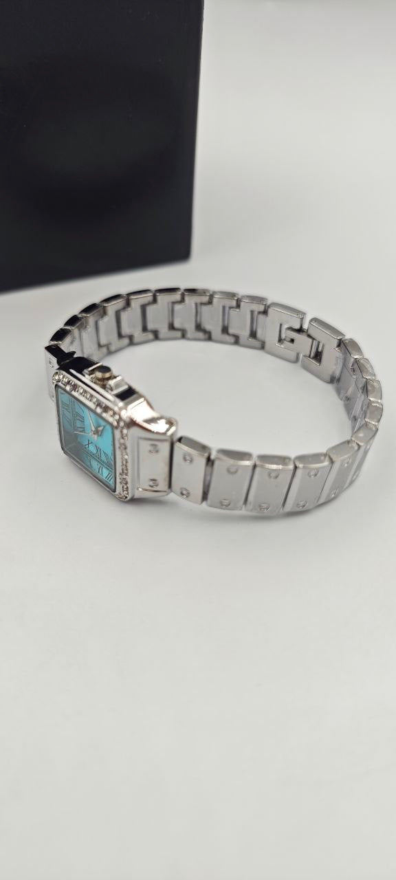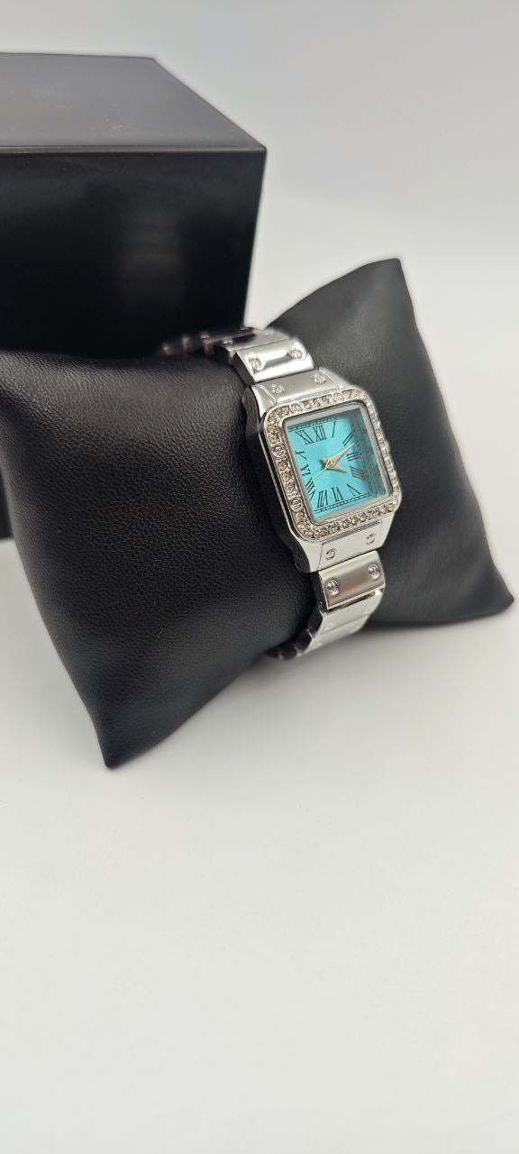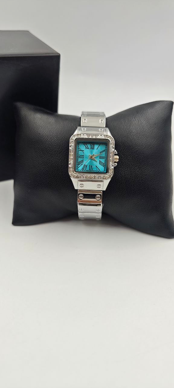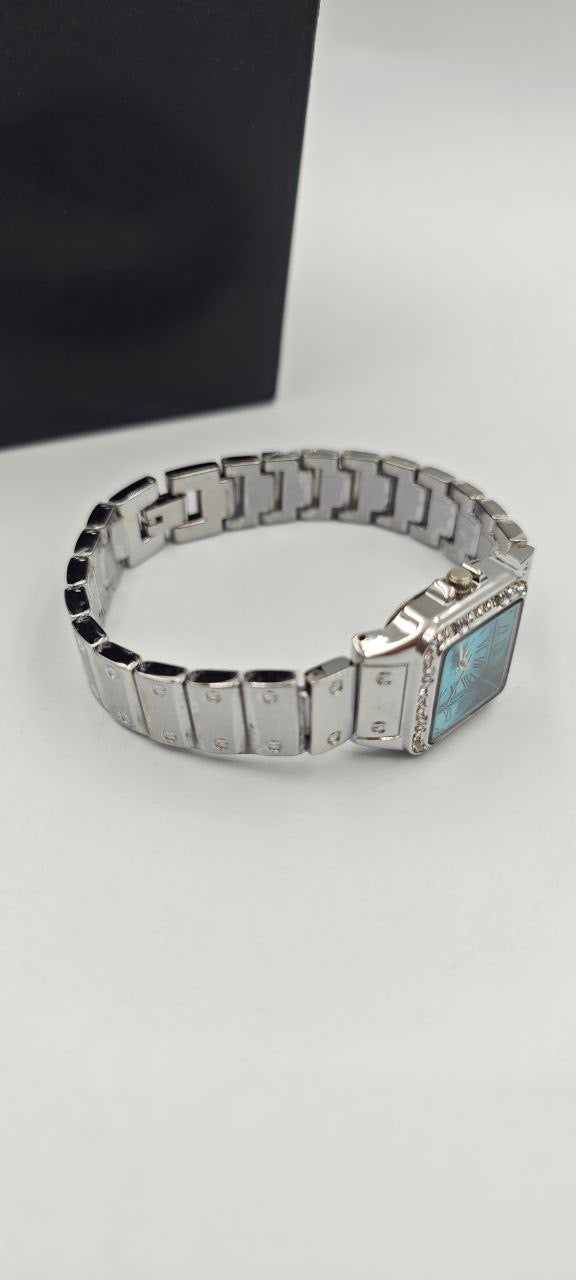 DIŞI GÜMÜŞ İÇİ TURKUAZ KARE BAYAN SAAT
